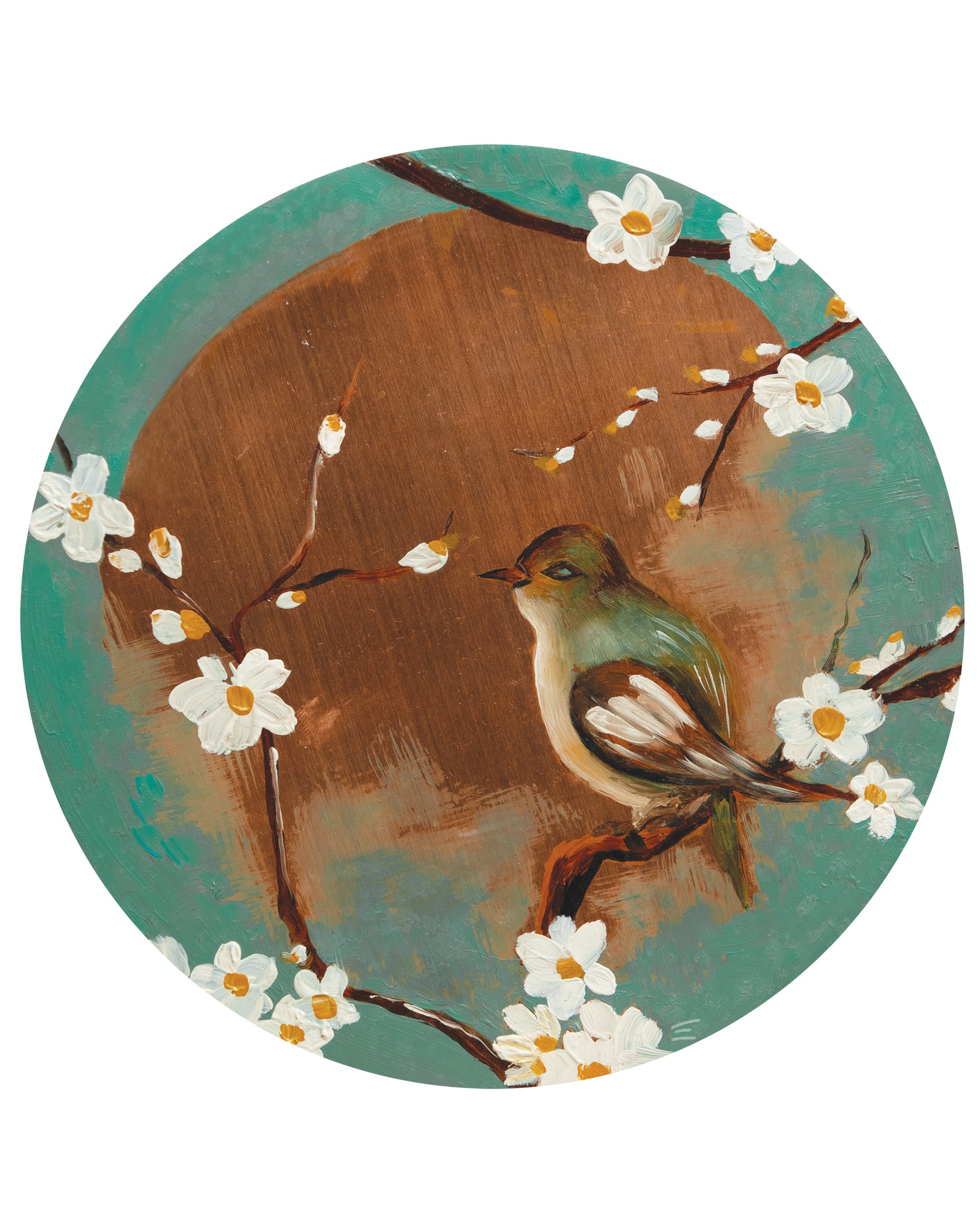 Yeniden Doğuş, 30x30 cm boyutlarında, bakır levha üzerine ustalıkla işlenmiş bir yağlı boya tablosudur. Bu eser, geleneksel sanat tekniklerinin modern yorumlarla buluştuğu bir örnek teşkil etmektedir. Bakır levha, sanatçının yaratıcılığını ve detaylara olan hassasiyetini yansıtan bir zemin sunar.